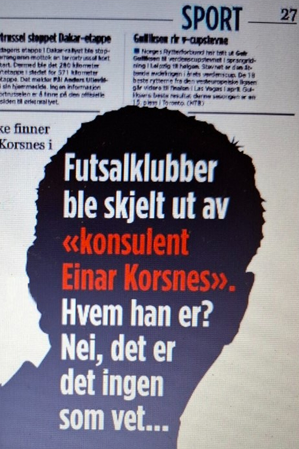 «Einar Korsnes» is the only one who became somewhat famous when Aftenposten ran a sensational feature – with a splashy top story on aftenposten.no for a whole morning and a large silhouette of Einar in the print paper – that IFS had engaged in something as extremely serious as «name cheating.» Tomas M. Lind, Gisle Hansen, Oddvar Mathisen, and Ståle Hansen, among others, never received any press coverage.